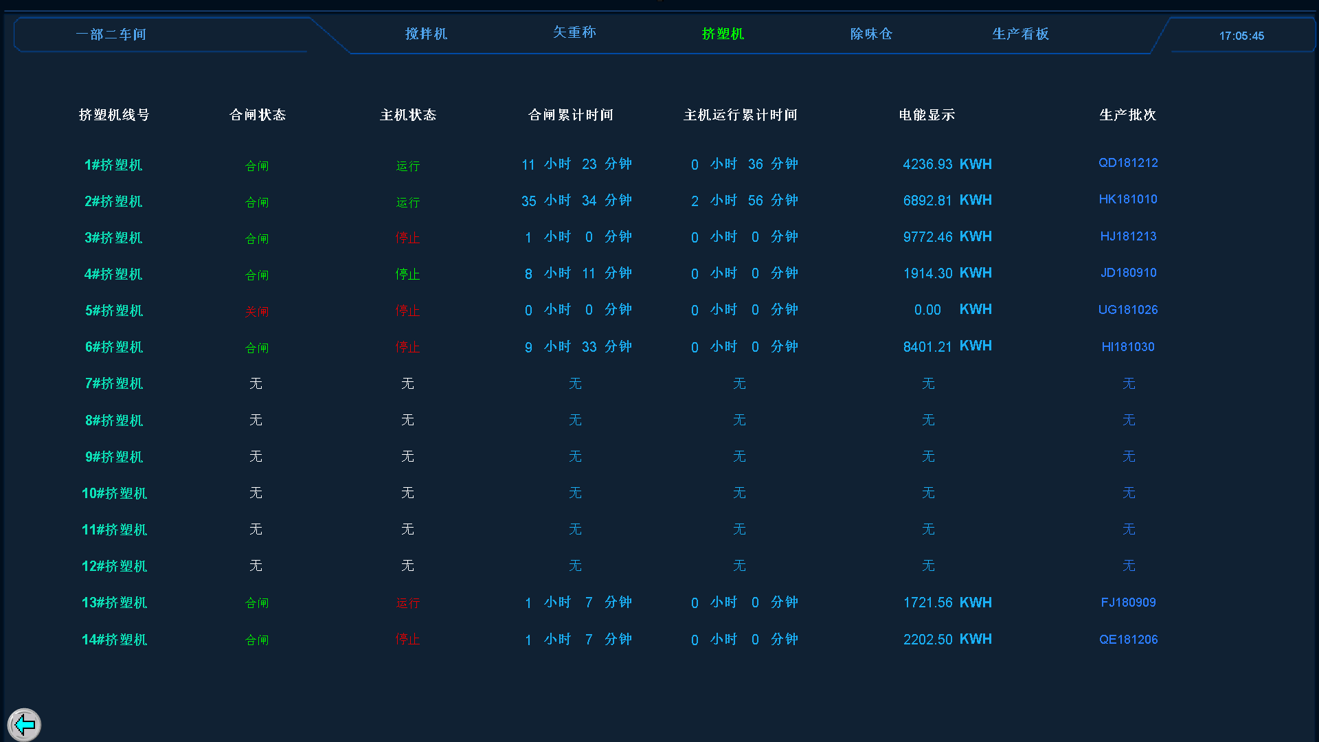 從生產(chǎn)的數(shù)據(jù)的角度主要是進(jìn)行的數(shù)據(jù)采集、整理和分析。形成報表等相應(yīng)的表單,通過對每一個生產(chǎn)線數(shù)據(jù)的分析,實現(xiàn)對生產(chǎn)組織,工藝指標(biāo)的嚴(yán)格控制,保證產(chǎn)品的質(zhì)量和降低生產(chǎn)能耗的生產(chǎn)目標(biāo)。 從管理角度主要指執(zhí)行下達(dá)的工單任務(wù)單能得到,準(zhǔn)確,無誤的執(zhí)行,調(diào)度生產(chǎn)過程所需要的各種資源,協(xié)調(diào)生產(chǎn)的相關(guān)運作環(huán)節(jié),為企業(yè)管理人員提供生產(chǎn)過程的監(jiān)督保證生產(chǎn)的平穩(wěn)、持續(xù)進(jìn)行。 通過對高速攪拌機(jī)、矢重秤、螺桿擠塑機(jī)、均化倉、自動換網(wǎng)機(jī)的生產(chǎn)過程數(shù)據(jù)來判斷生產(chǎn)質(zhì)量和設(shè)備狀況等信息;