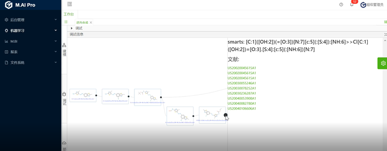 但如果近似性搜索庫中沒有近似項,那么系統會調用逆向合成機器人,系統會逆向推導所需化合物的合成過程以及合成途徑中所引用的相關文獻,并會自動生成多條合成路徑,來擴展研發人員的研發思路。通過相應的路線和可參考的資料,企業可以進行人為干預的合成路線實驗設計和修正,同時人工智能算法會自動學習企業常用的化合物和合成習慣,從而可以將整個研發團隊的經驗進行數字化積累。