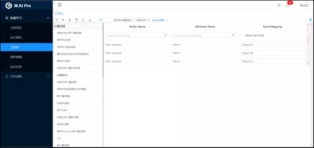 首先配置讀取組件然后從數據大腦中的組件面板查找項目分析組件,拖到工作面板,配置數據,項目分析組件參數,點擊運行。